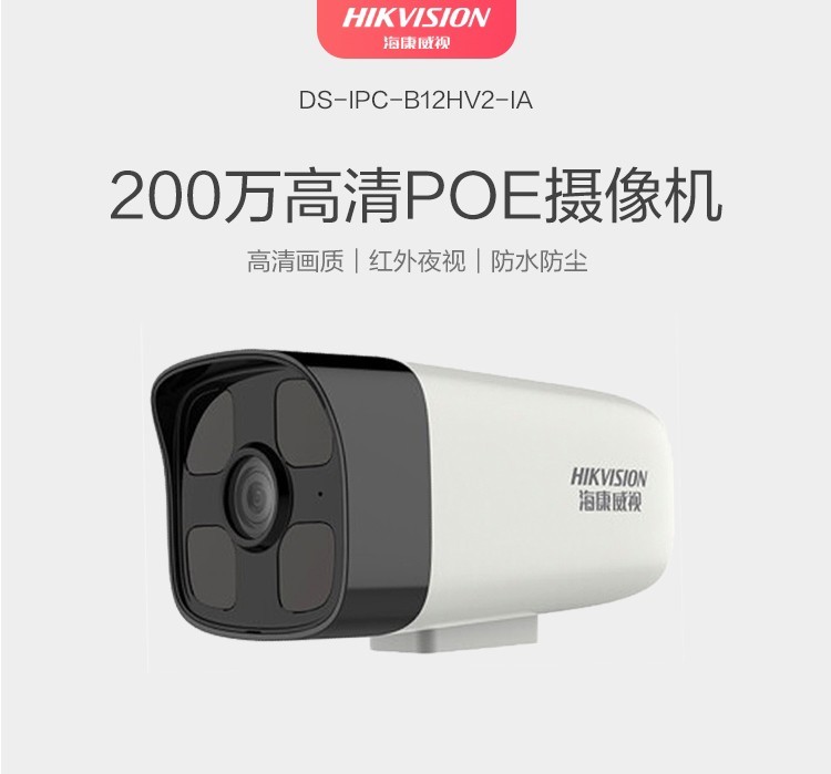 海康威視(HIKVISION)DS-IPC-B12HV2-IA 監(jiān)控攝像機 POE供電/ 4MM焦距